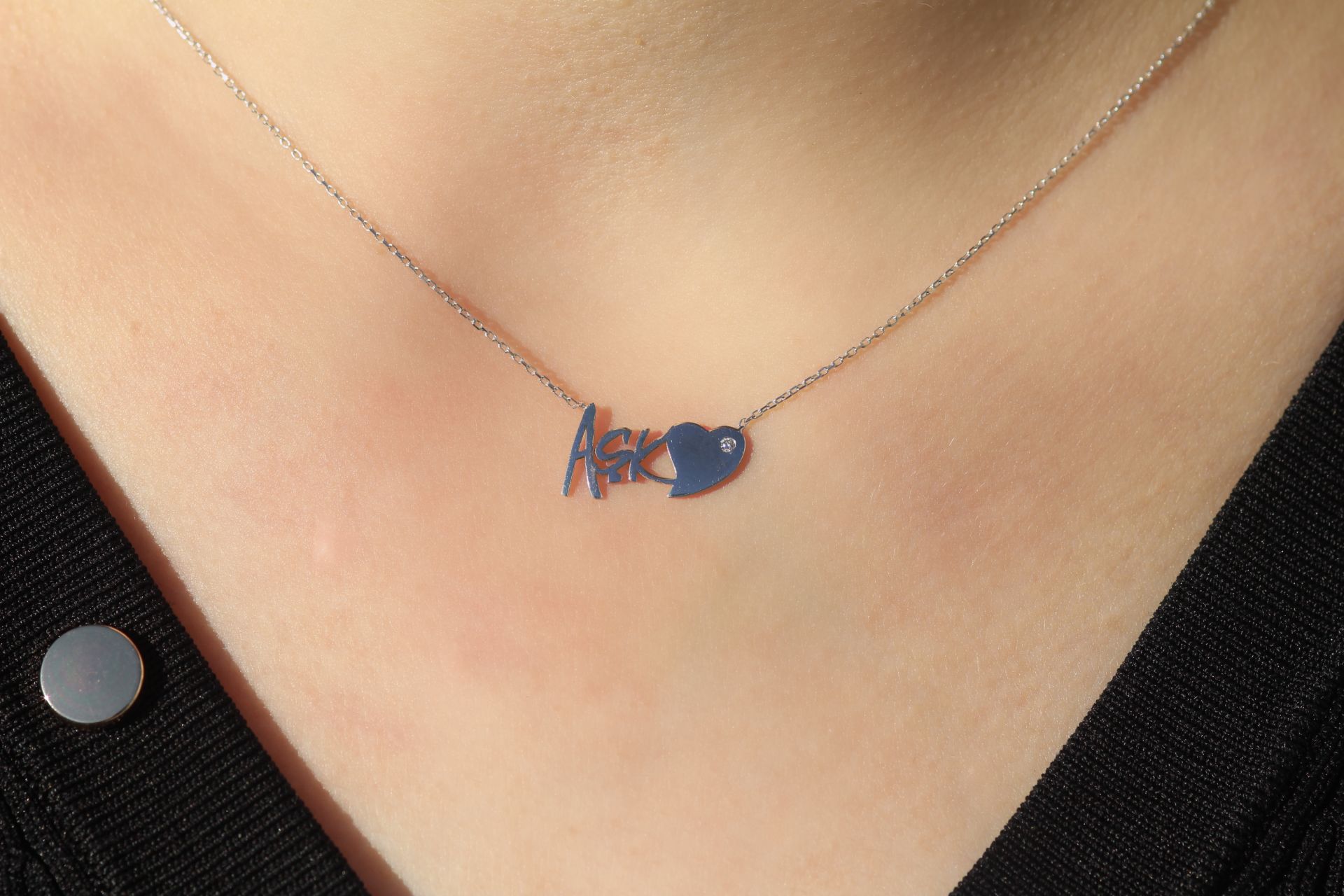 0,03 Karat Aşk Yazılı Pırlanta Tasarım Kolye