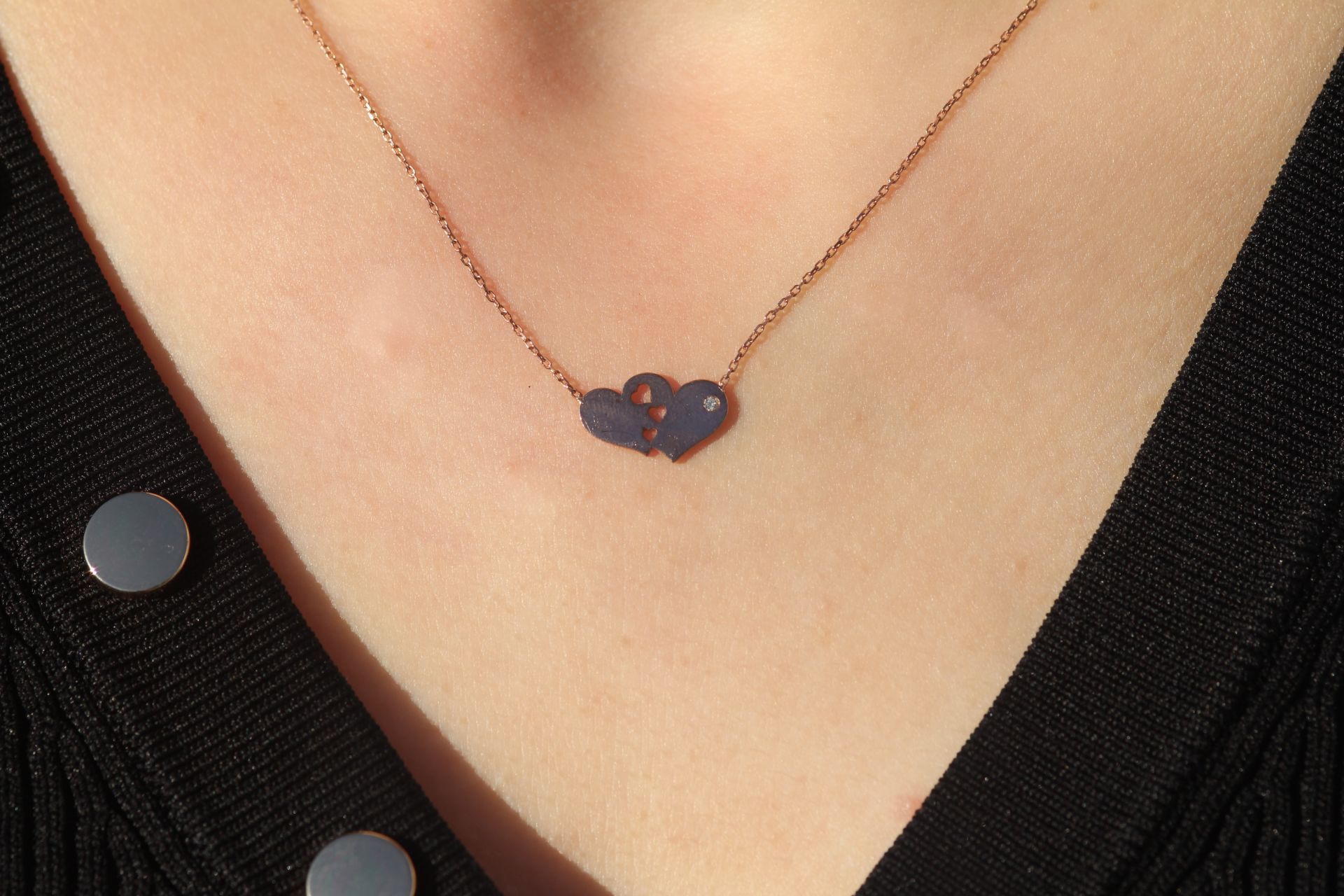 0,03 Karat Rose Kalp Tasarımlı Pırlanta Kolye