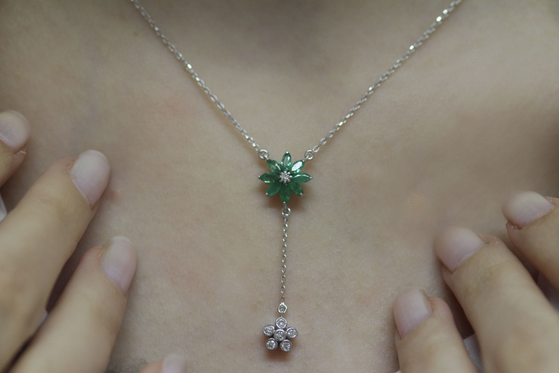 0,17 Karat Pırlanta Zümrüt Kolye