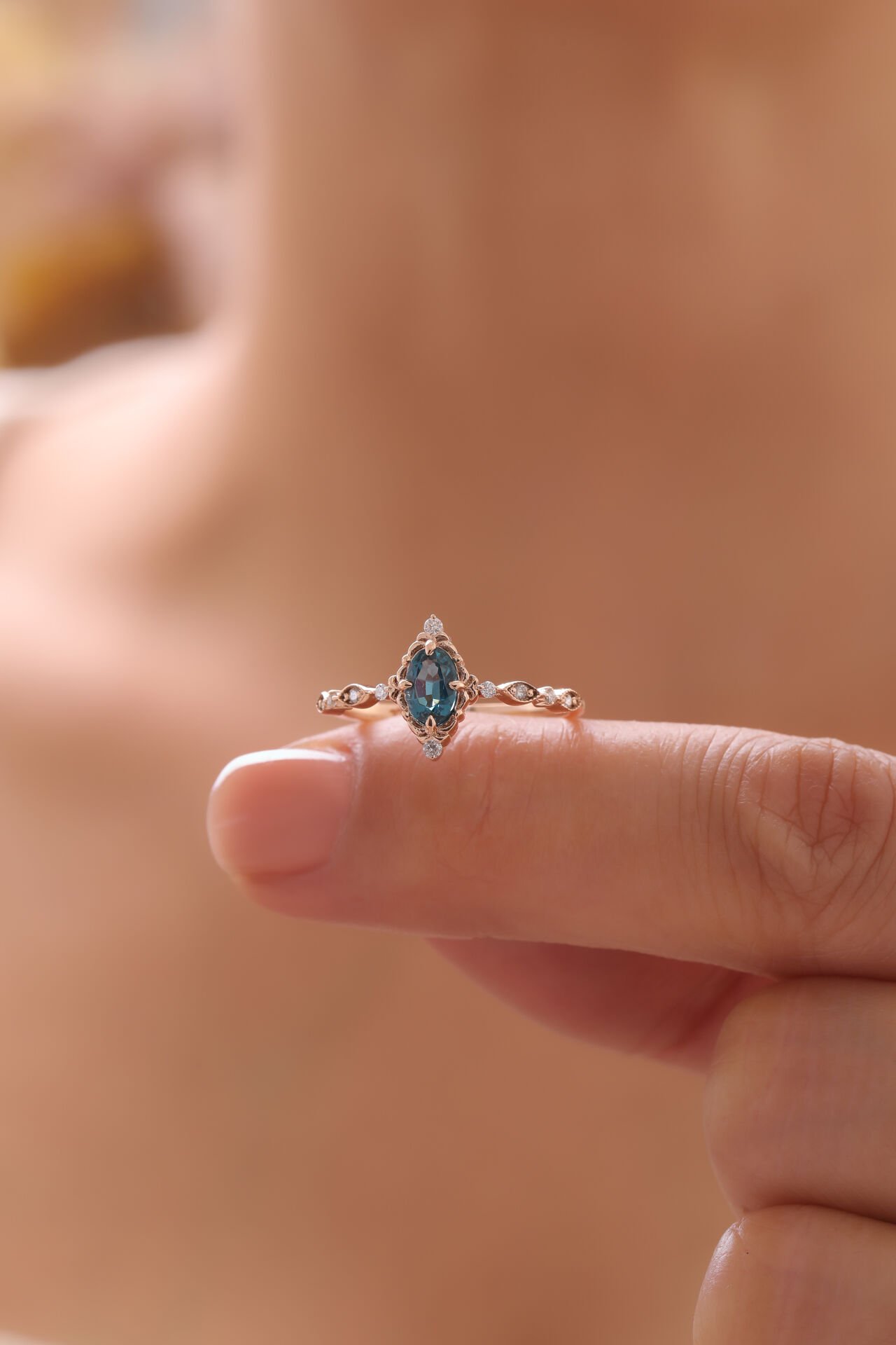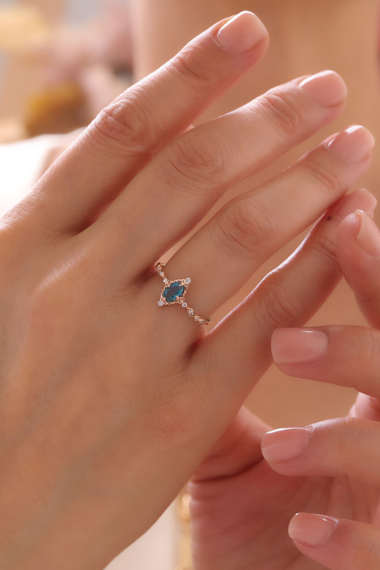 0,50 Karat Pırlanta Vintage Oval London Blue Yüzük