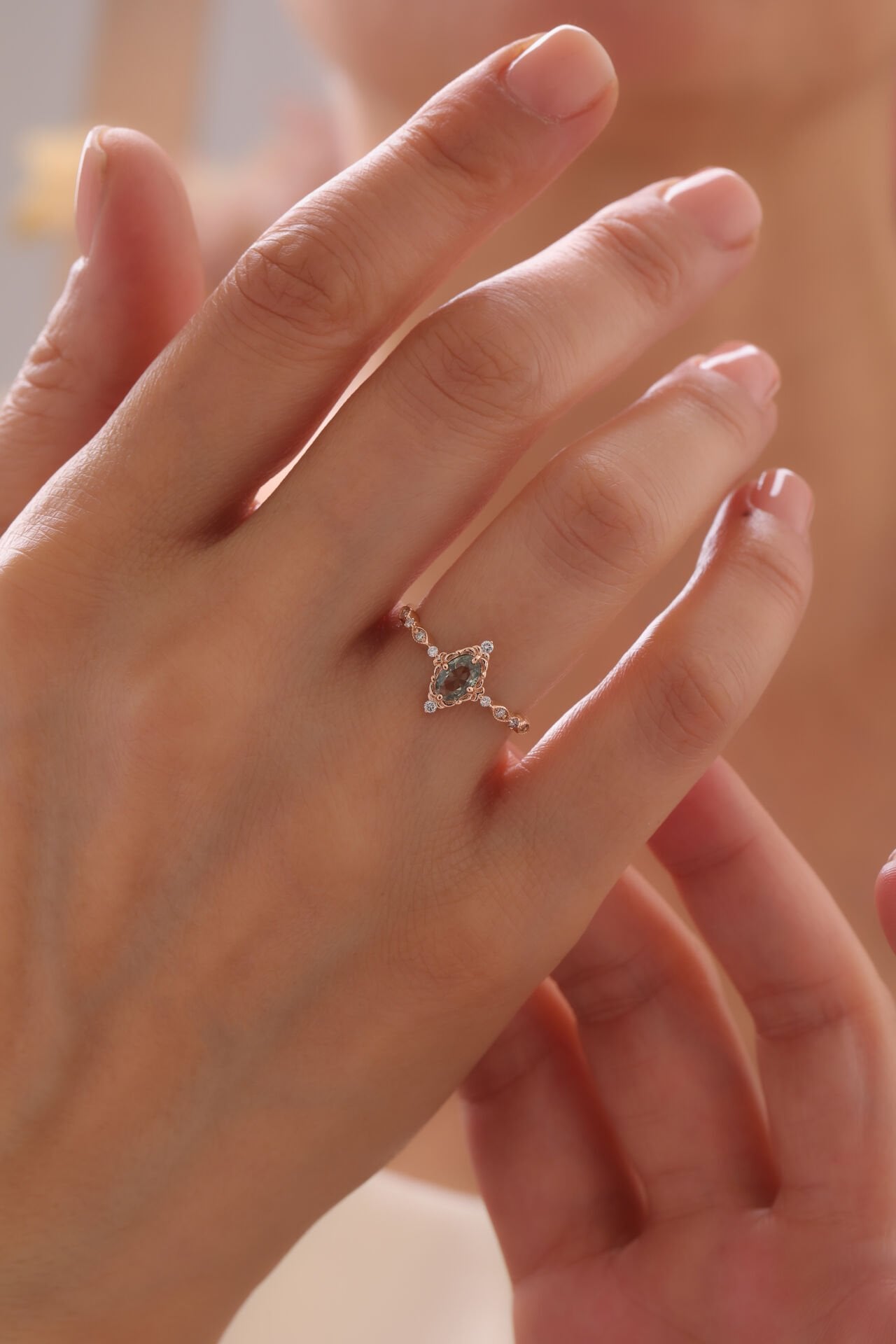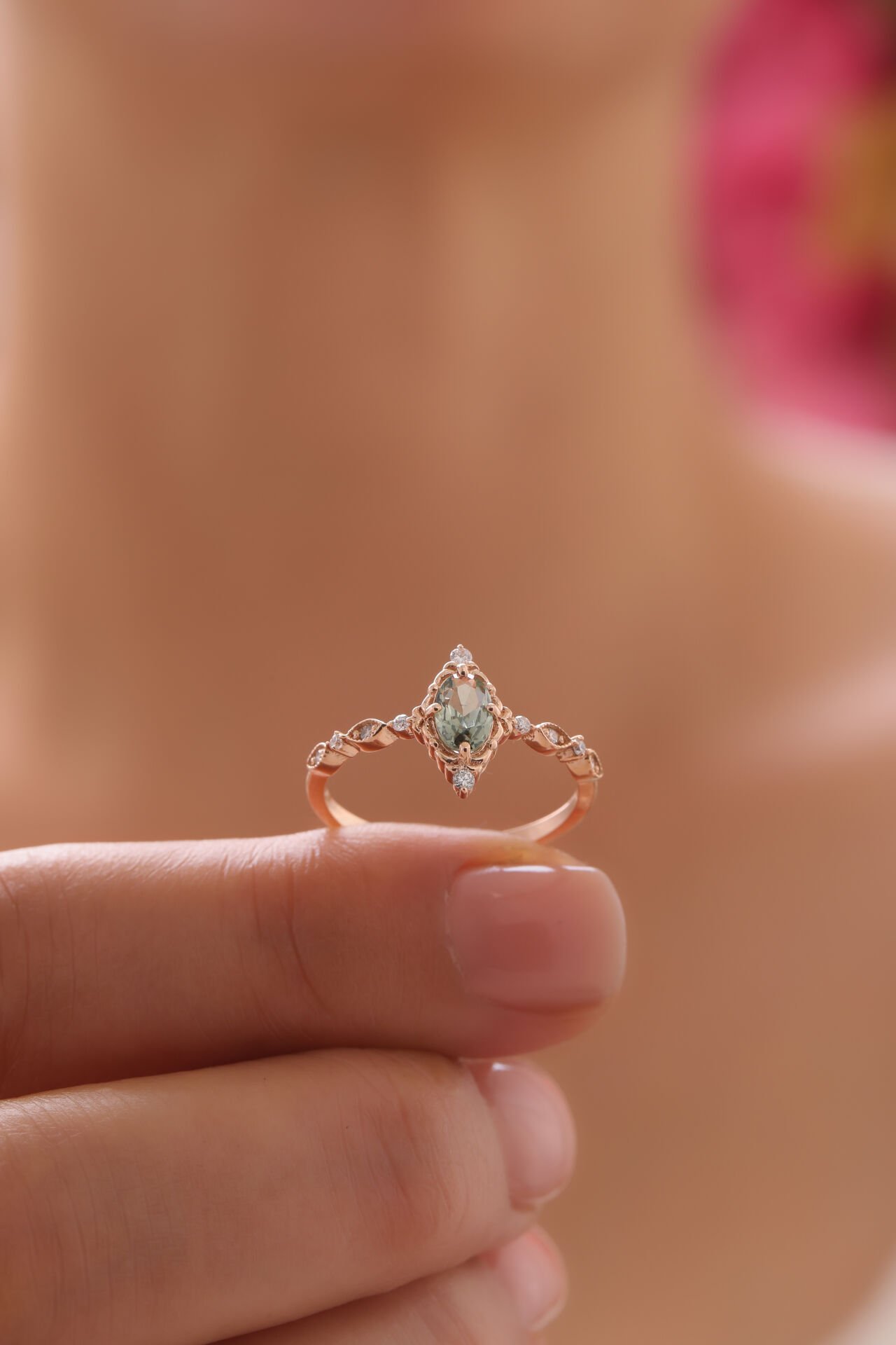 0,52 Karat Pırlanta Vintage Yeşil Safir Yüzük