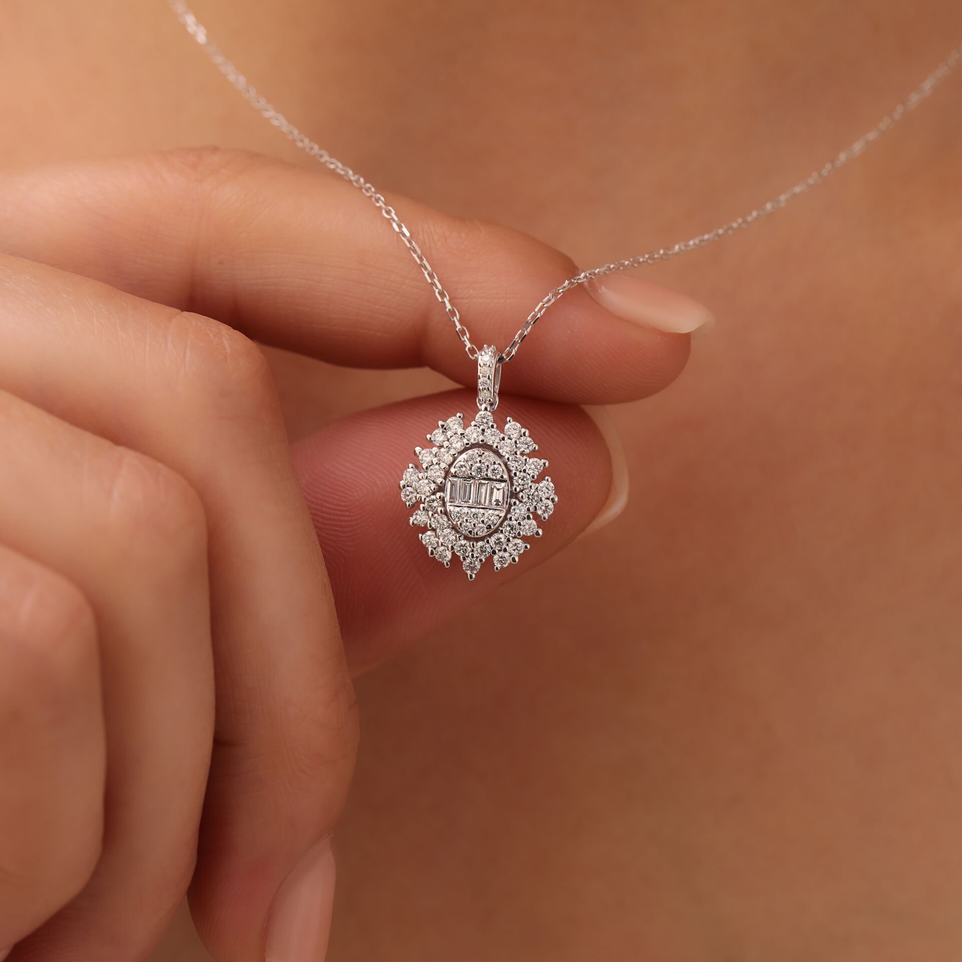 0,74 Karat Pırlanta Baget Kolye