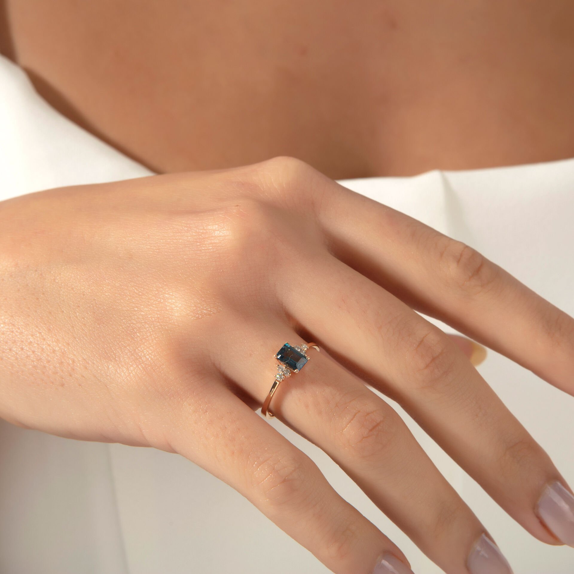 0,61 Karat Pırlanta Vintage Emerald London Blue Yüzük
