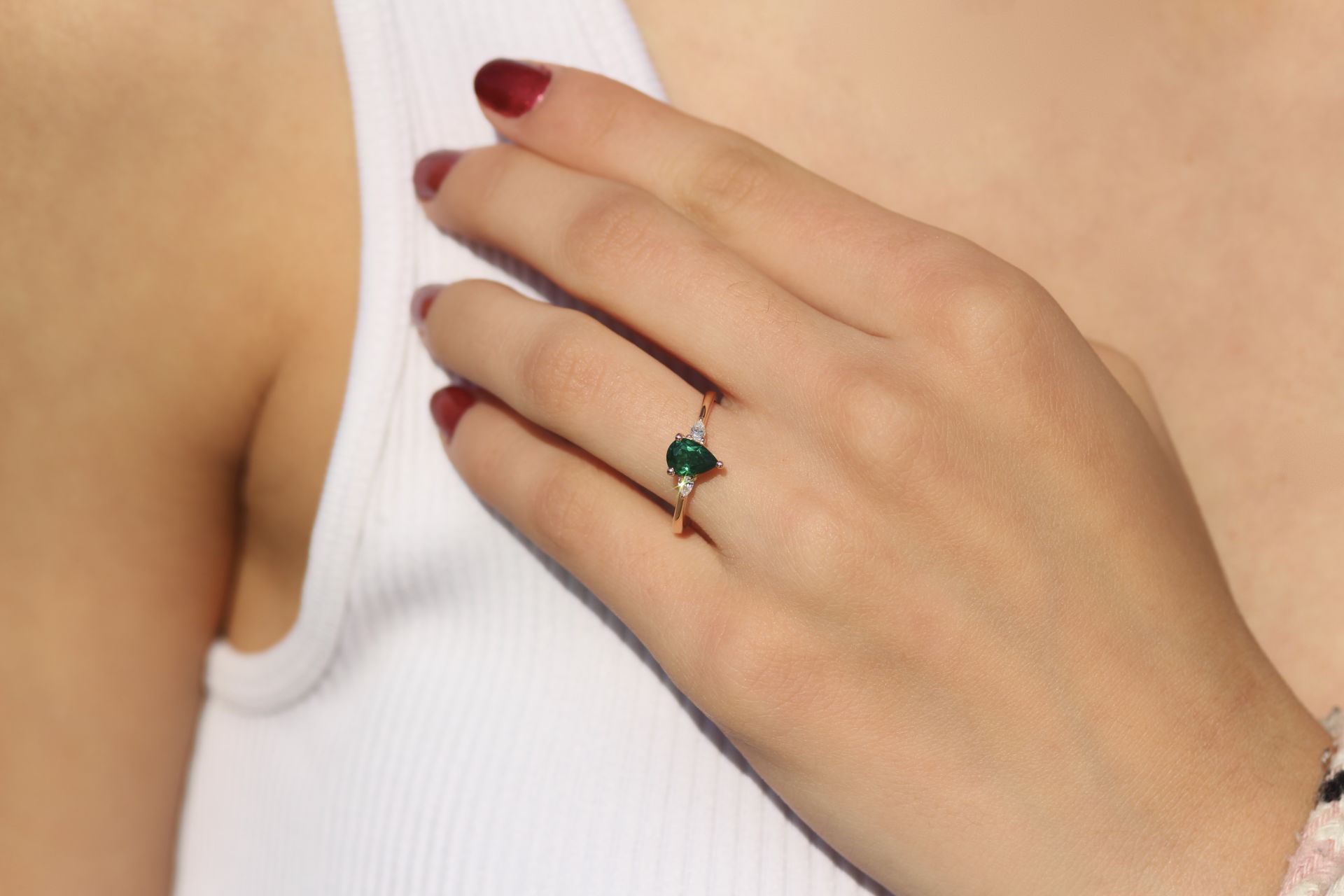 0,82 Karat Pırlanta Vintage Zümrüt Yüzük