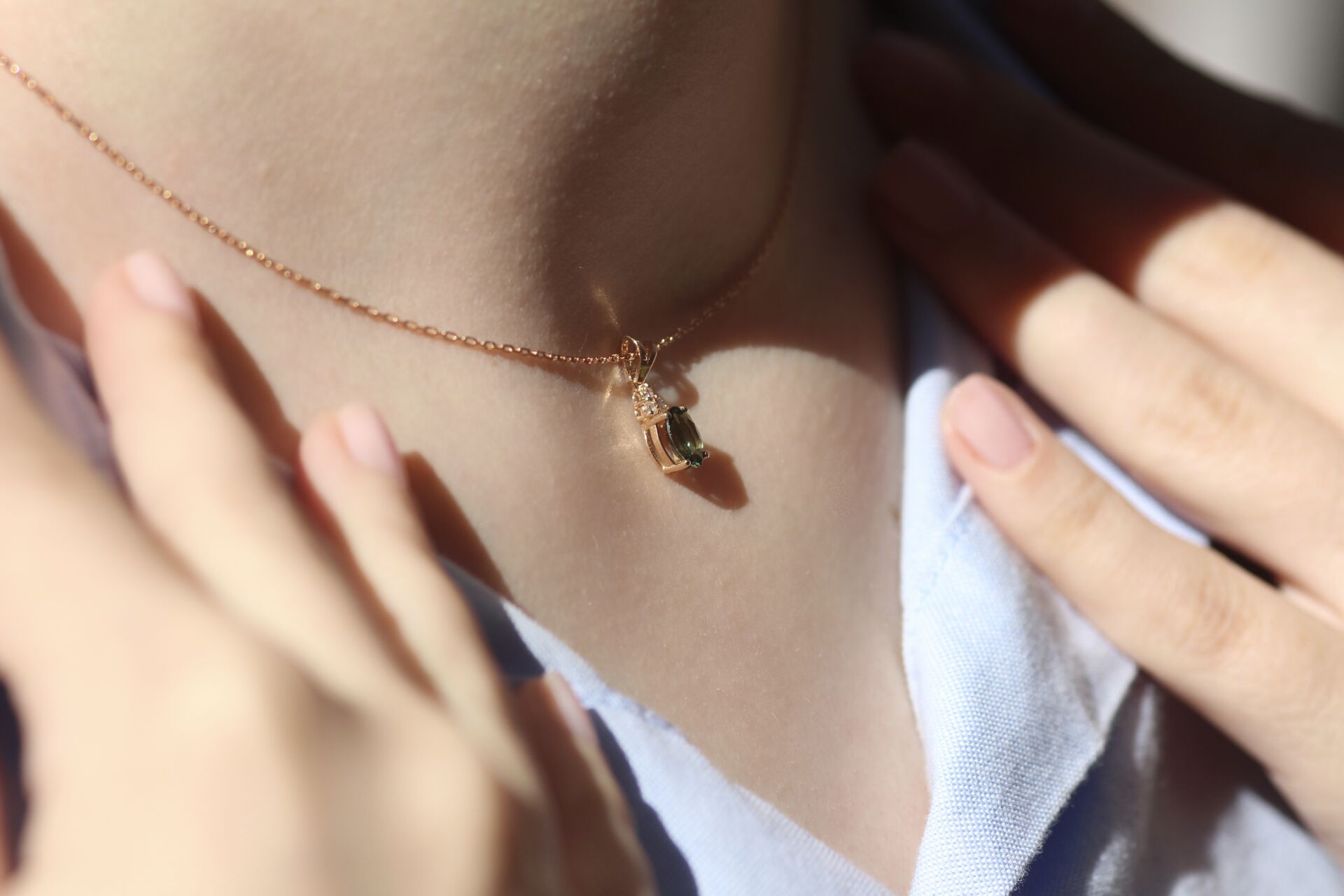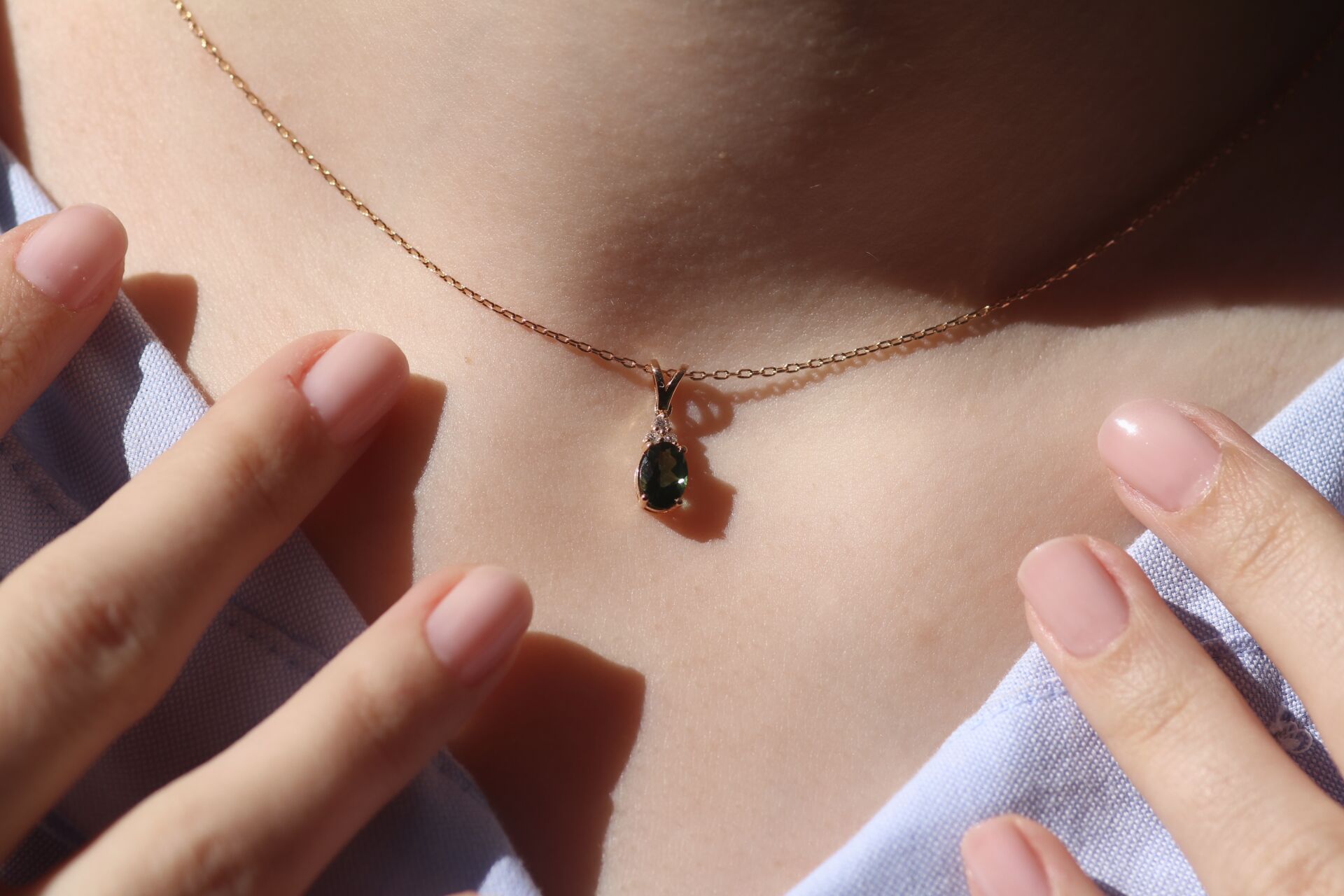 0,86 Karat Pırlanta Yeşil Safir Kolye