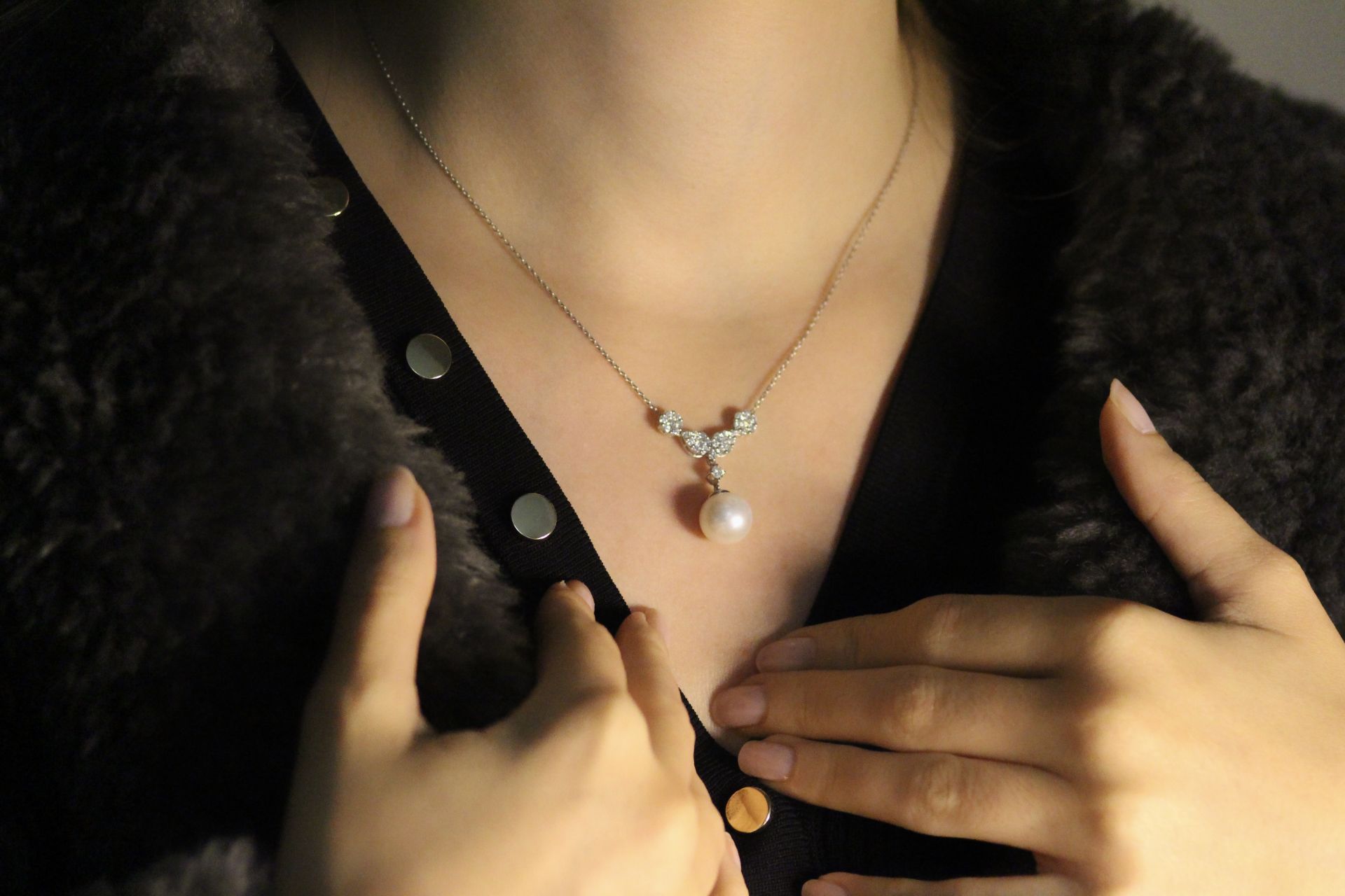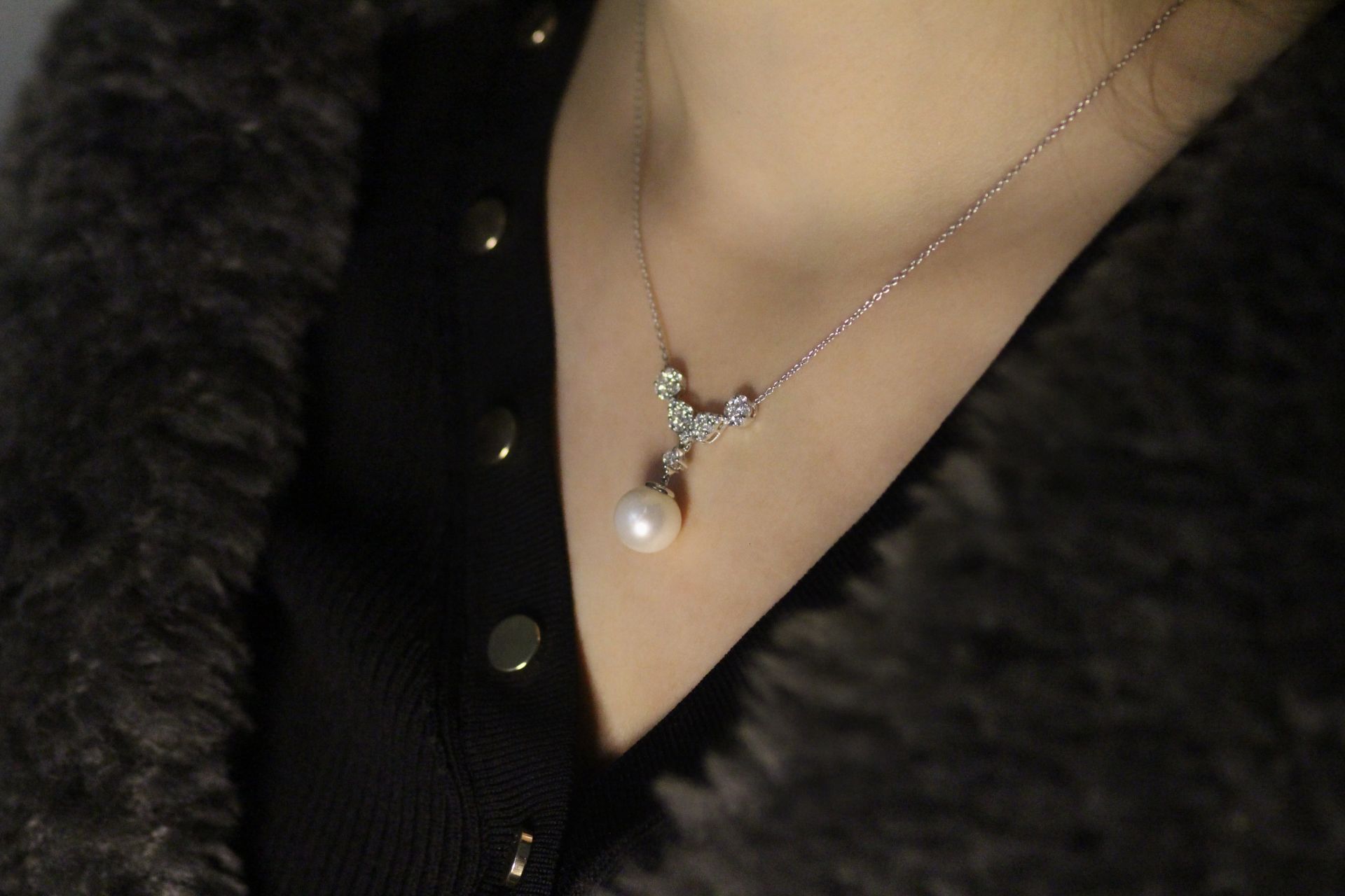 0,87 Karat Pırlanta İnci Kolye