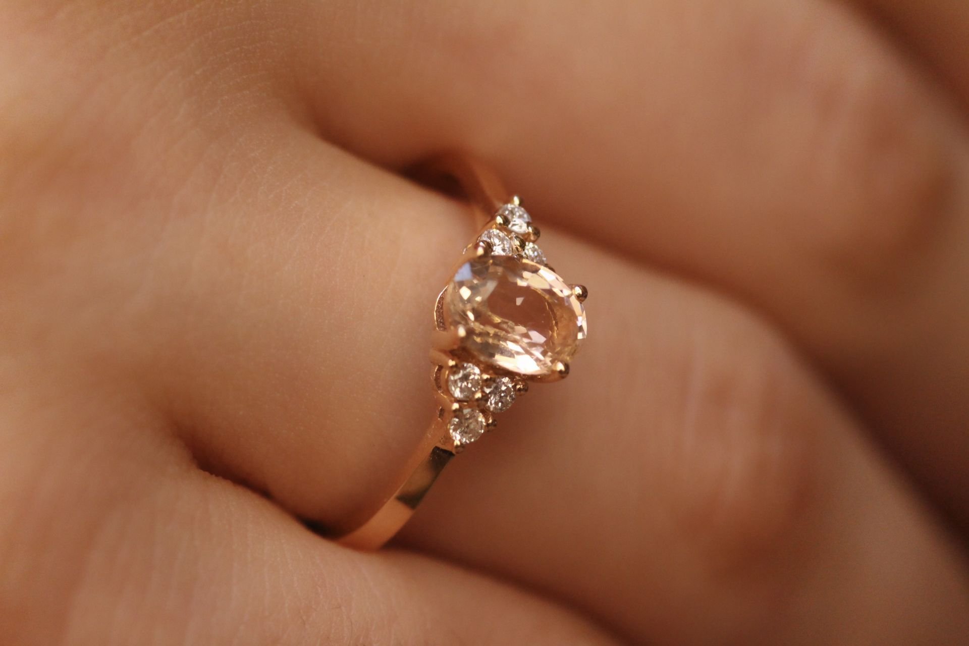1,07 Karat Pırlanta Vintage Morganit Oval Yüzük