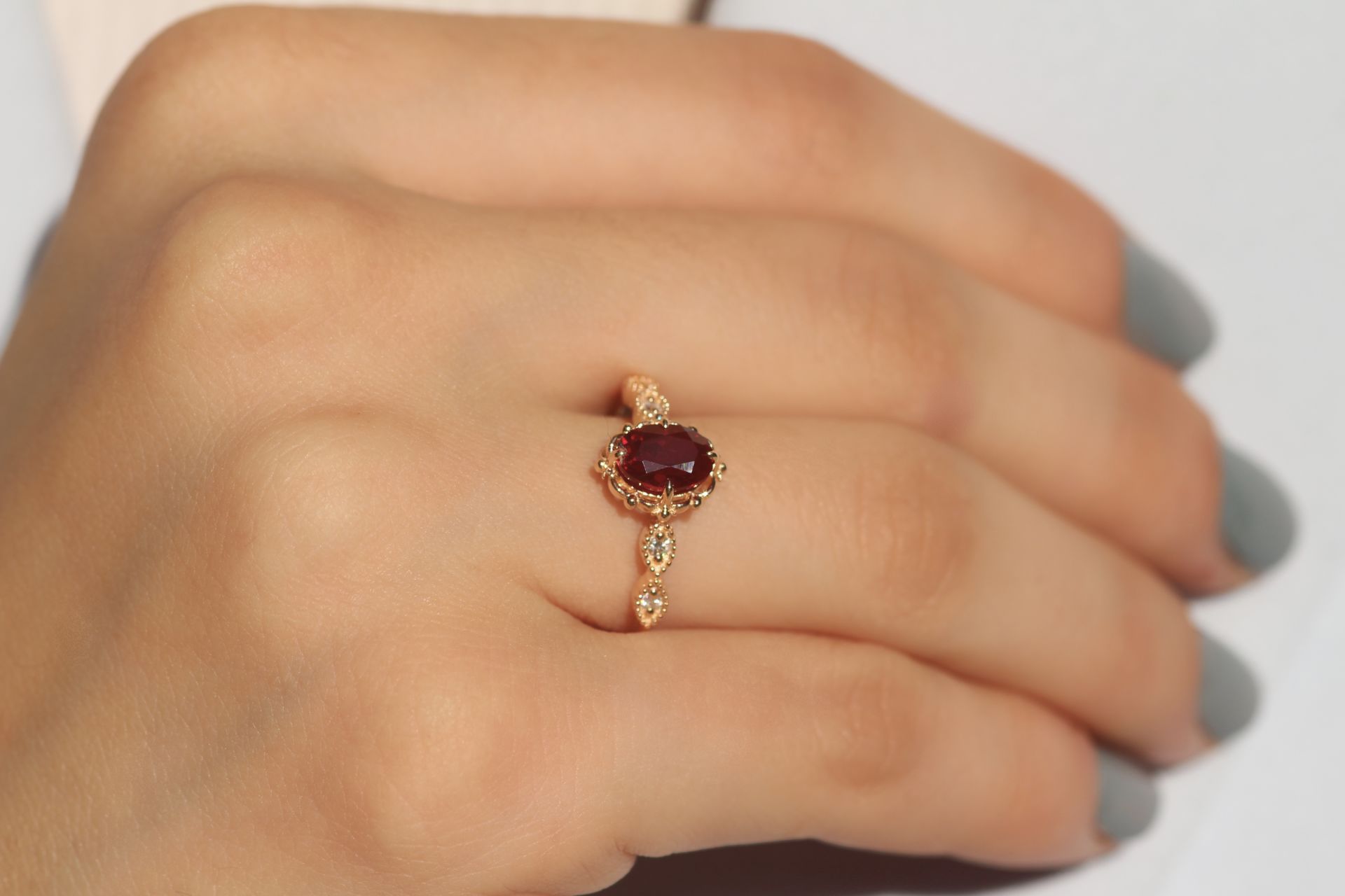 1,00 Karat Pırlanta Vintage Ruby Yüzük