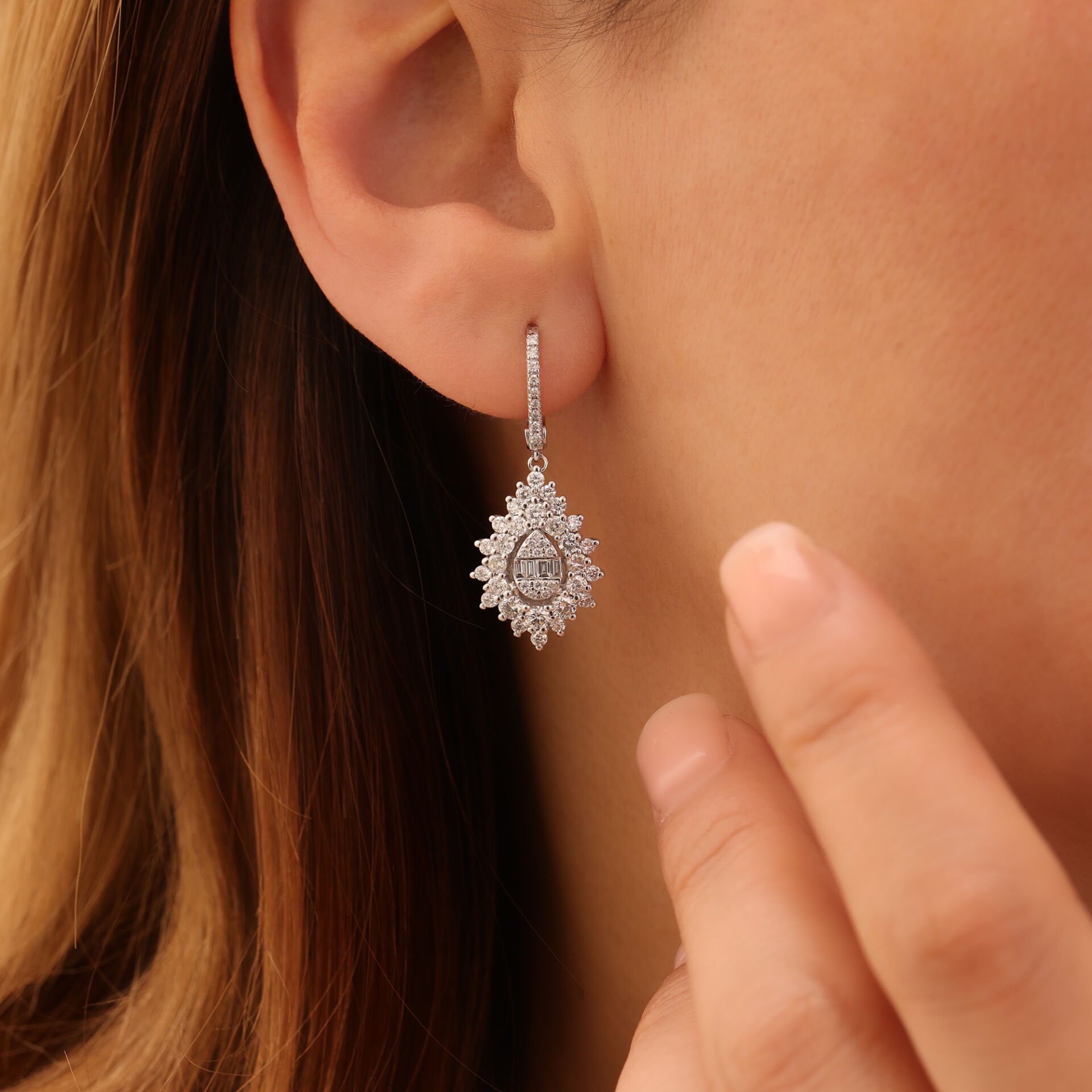 1,94 Karat Pırlanta Baget Küpe