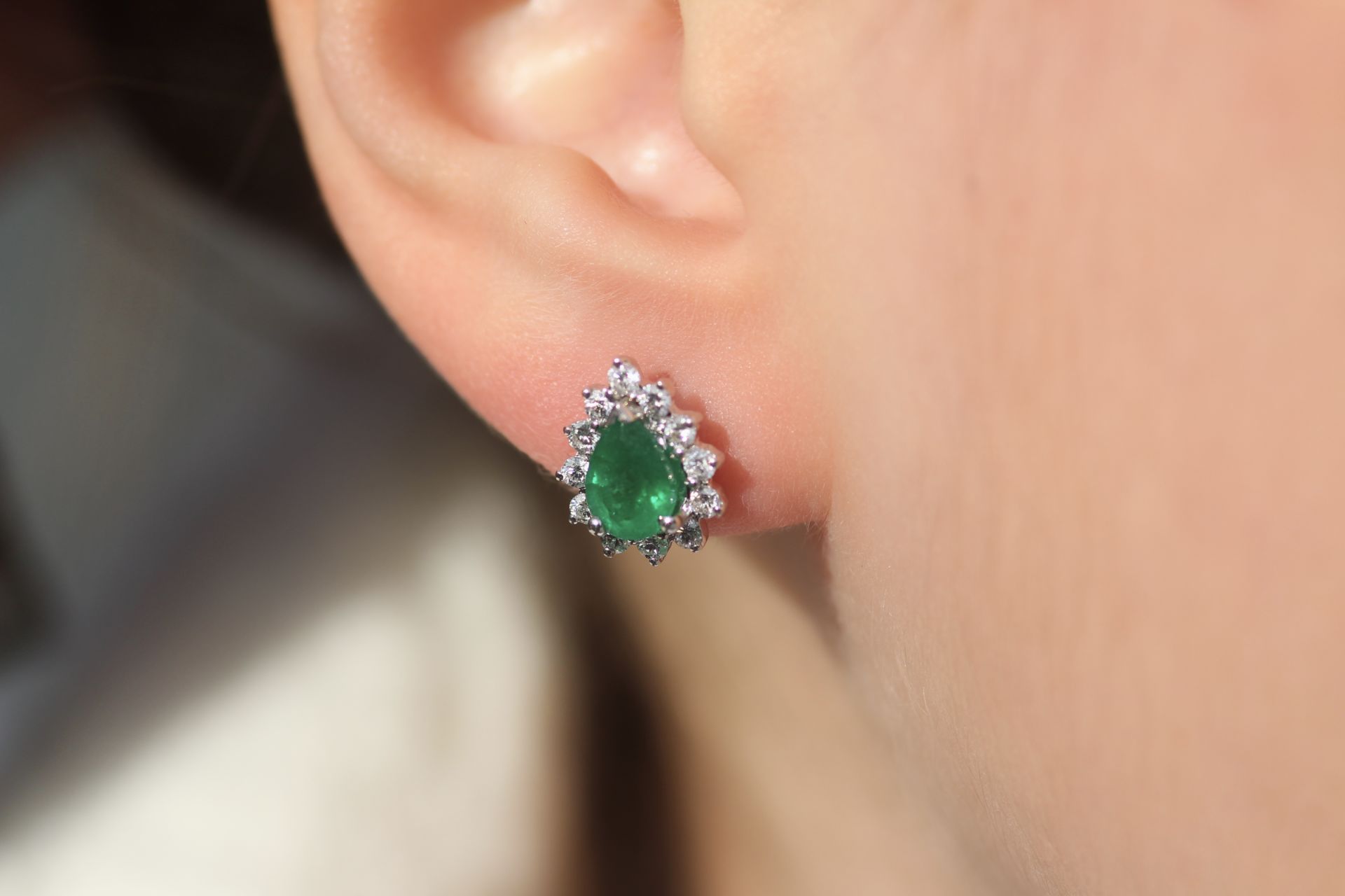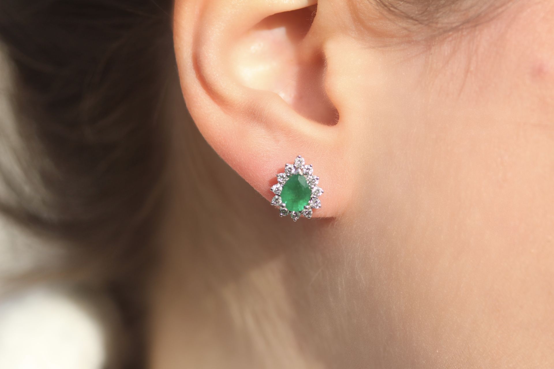 1,80 Karat Pırlanta Zümrüt Küpe